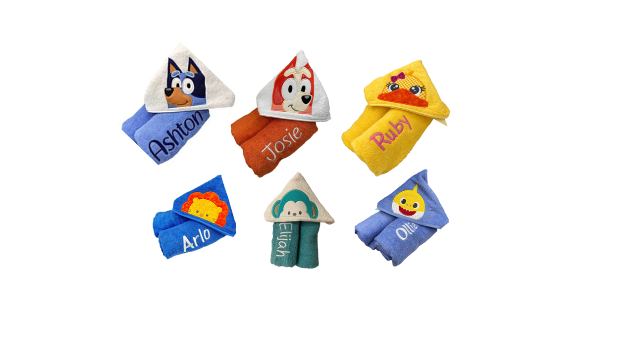 Ordered the personalised hooded towels for each of my grandchildren with a different animal hood. They are gorgeous. Towels are soft, colours are vibrant & embroidery is quality. I love that there was so much voice in terms of mix & matching colours & embroidery colours.