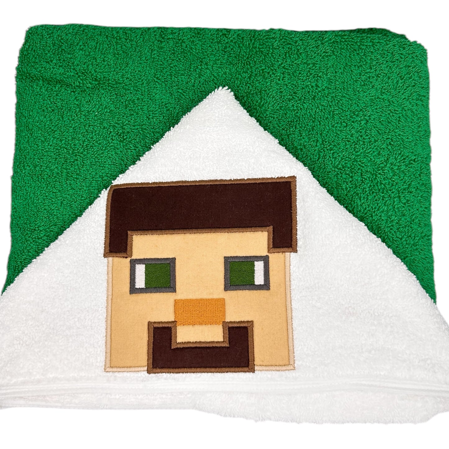 Hooded bath towel for kids (up to 10yo), personalised and embroidered, with Minecraft character.
